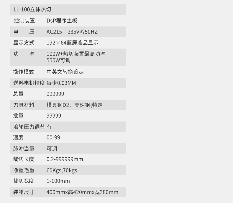 LL-100桌上全數(shù)字智能切斷機(jī)(熱切型)/(冷切型) 產(chǎn)品說明: 本機(jī)采用全數(shù)字智能控制裝置,按鍵操作,同時(shí)可任意設(shè)定切斷長度/數(shù)量、送料速度、且裁切精度準(zhǔn)確、耗損少、機(jī)型設(shè)計(jì)符合人體工學(xué)原理操作簡單,廣泛適用于織帶、拉鏈、...